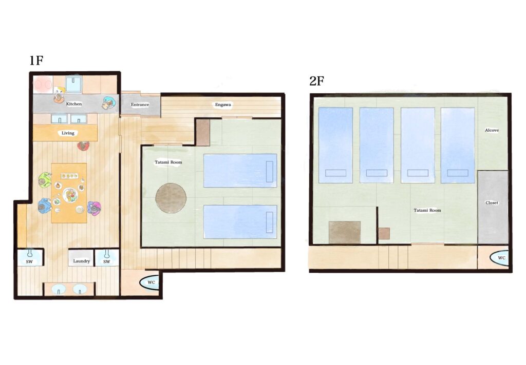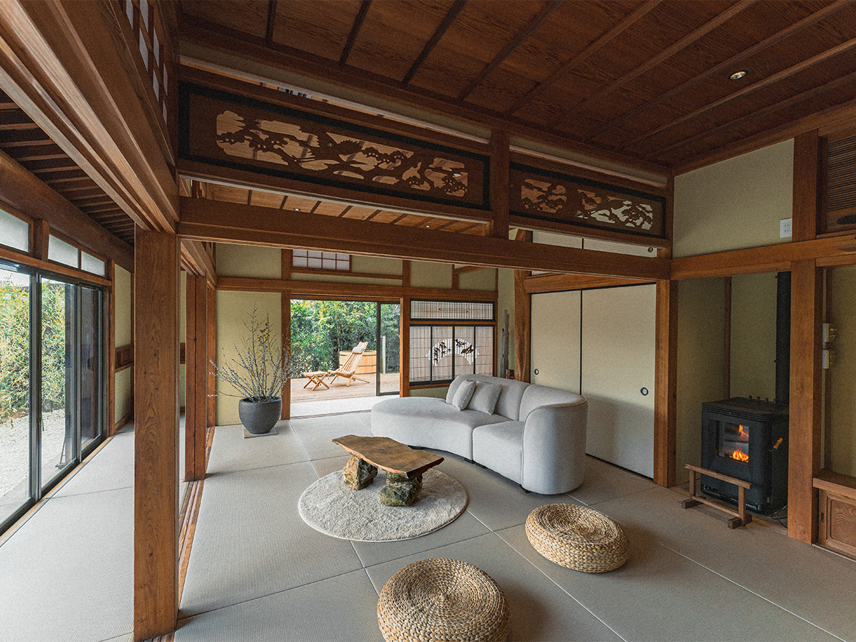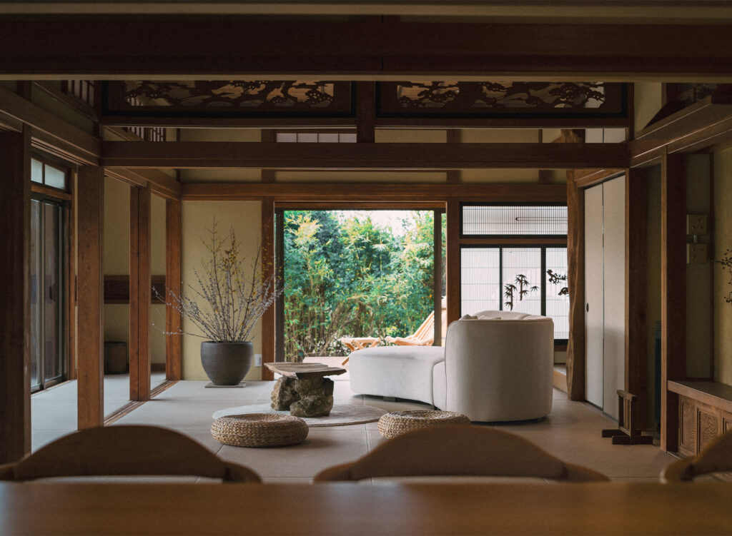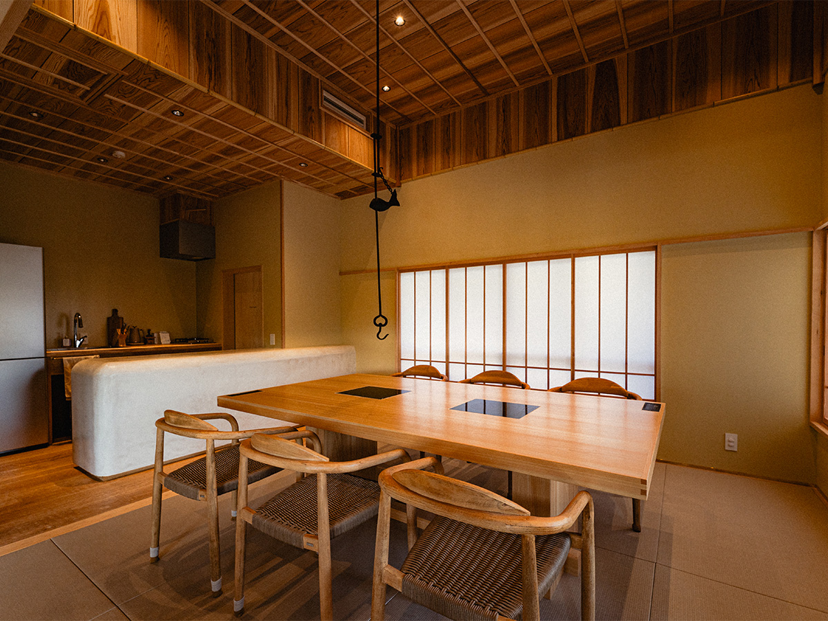和モダンの意匠をしつらえた一棟貸切の空間で、
