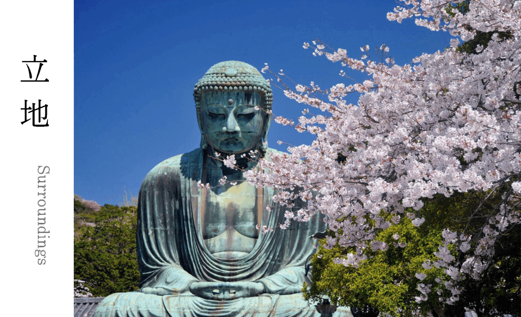 鎌倉観光に欠かせない江ノ電の最寄り駅がすぐそばにあり、周辺の御成通りには名店レストランも点在。